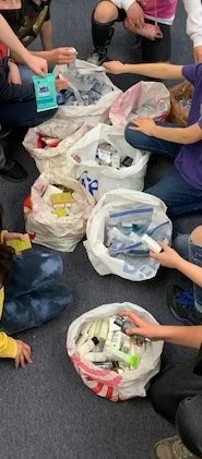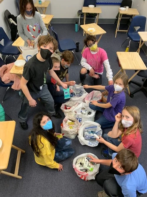 Thank you, Congregation Har Shalom Kita Dalet class in Fort Collins, Colorado! From their teachers, Naomi Banta and Judy Petersen: "Our first mitzvah project was to collect money for the Food Bank for Larimer County. Every week students bring tzedakah money to class and we collect it in our tzedakah boxes. We always need two ! In December we gave the Food Bank over $200. During the month of February we had two projects going. The first was to collect small toiletries for Homeward Alliance. In this picture you can see students sorting the donations. Our community helped us donate 6 bags of toiletries to the homeless shelter! We are also saving our Tzedakah money to donate to the Greenwood Wildlife Rehabilitation Center.”